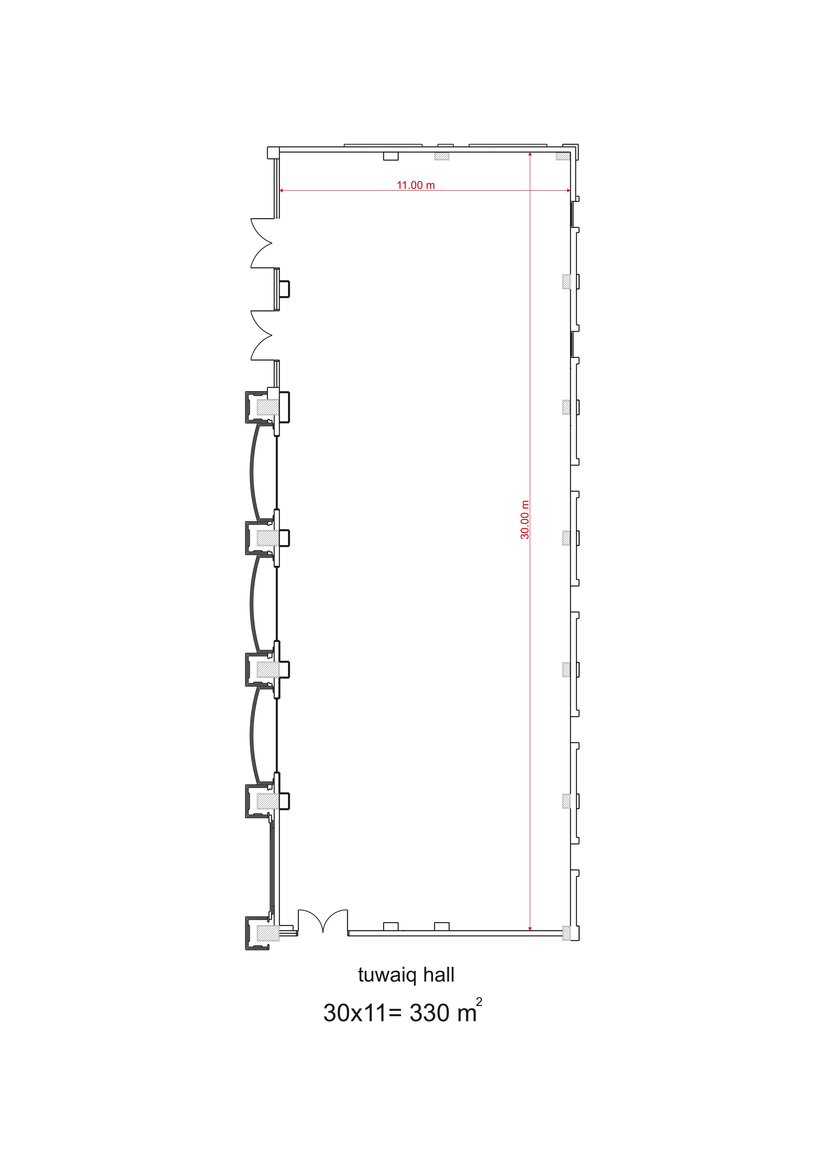 أبعاد القاعة: 30 × 11 = 330 متر مربع